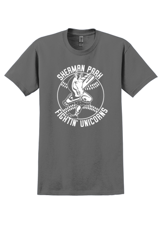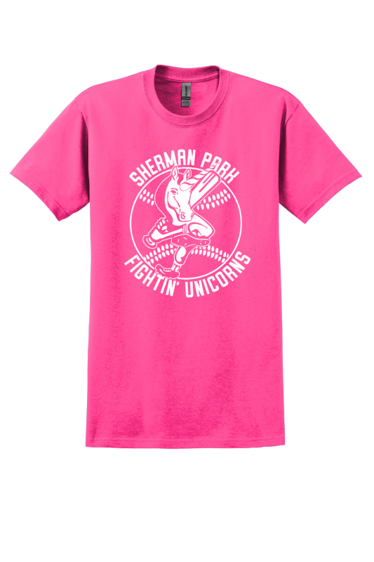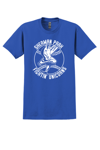 Custom screen-printed 100% cotton unisex adult t-shirts by Gildan or similar.
