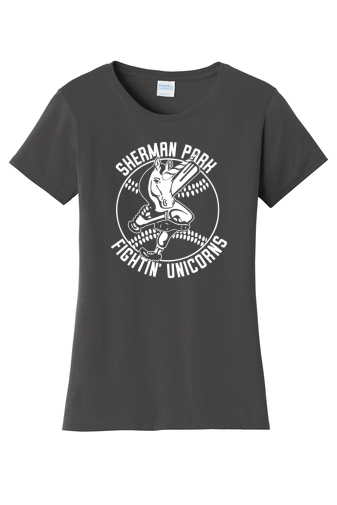 Custom screen-printed women's crewneck t-shirts by Port and Company. Soft 100% ringspun cotton, slightly lighter weight at 4.5-ounce. Runs just a touch fitted.